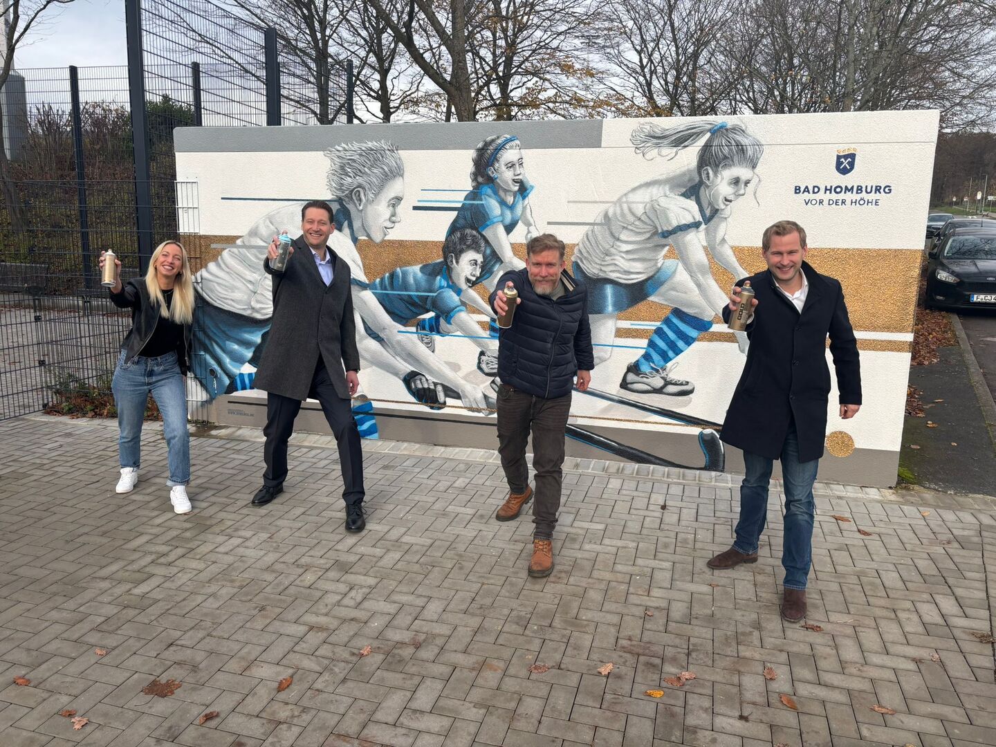 Das Projekt entsprang übrigens einer Initiative des Ortsbeirates Kirdorf. Die Projektleitung für die Gestaltung hatte Jasmin Beyer aus der Stadtverwaltung in Zusammenarbeit mit dem Bereich Grünflächen der Stadt inne. Für Beyer ist es bereits das vierte Graffitiprojekt, das sie für Bad Homburg realisiert hat: „Es freut mich sehr, dass wir mit diesem Projekt nicht nur das Sportzentrum aufwerten, sondern auch ein harmonisches Zusammenspiel von Natur, Sport und Kunst schaffen konnten. Die positive Resonanz zeigt, wie wichtig solche Orte für das Stadtbild sind.“
