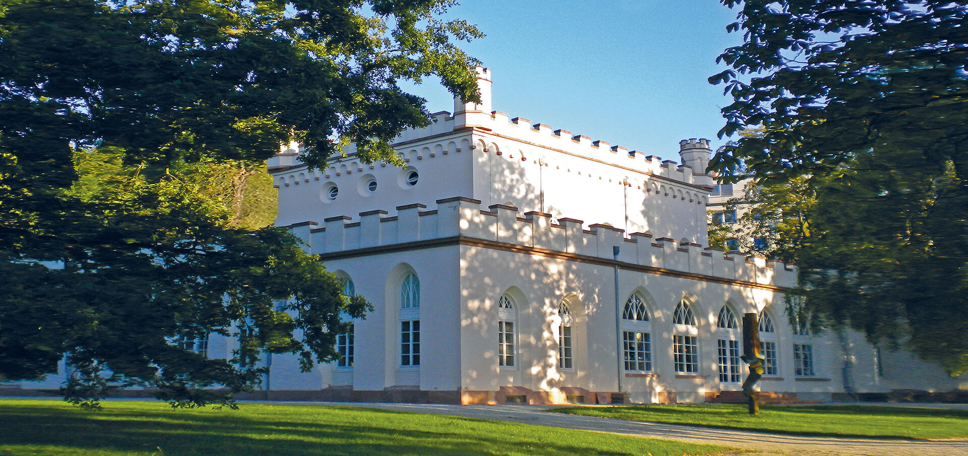 Die Sanierung des Gotischen Hauses geht zu Ende. 2025 wird das Museum wiedereröffnet. Seine Fassade zeigt sich in der historischen Formensprache der im 19. JahrhundertTudor-Gotik, einzigartig auf dem europäischen Festland, dessen „Gotische Häuser“ in englischen Landschaftsgärten (s. Puschkin, Pulawy oder das Gartenreich Dessau-Wörlitz) die Architektur der deutschen Gotik, teils mit anderen Stilen kombiniert, zitieren.