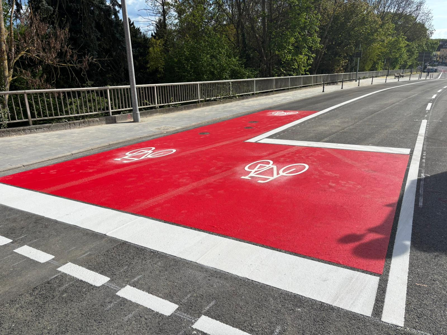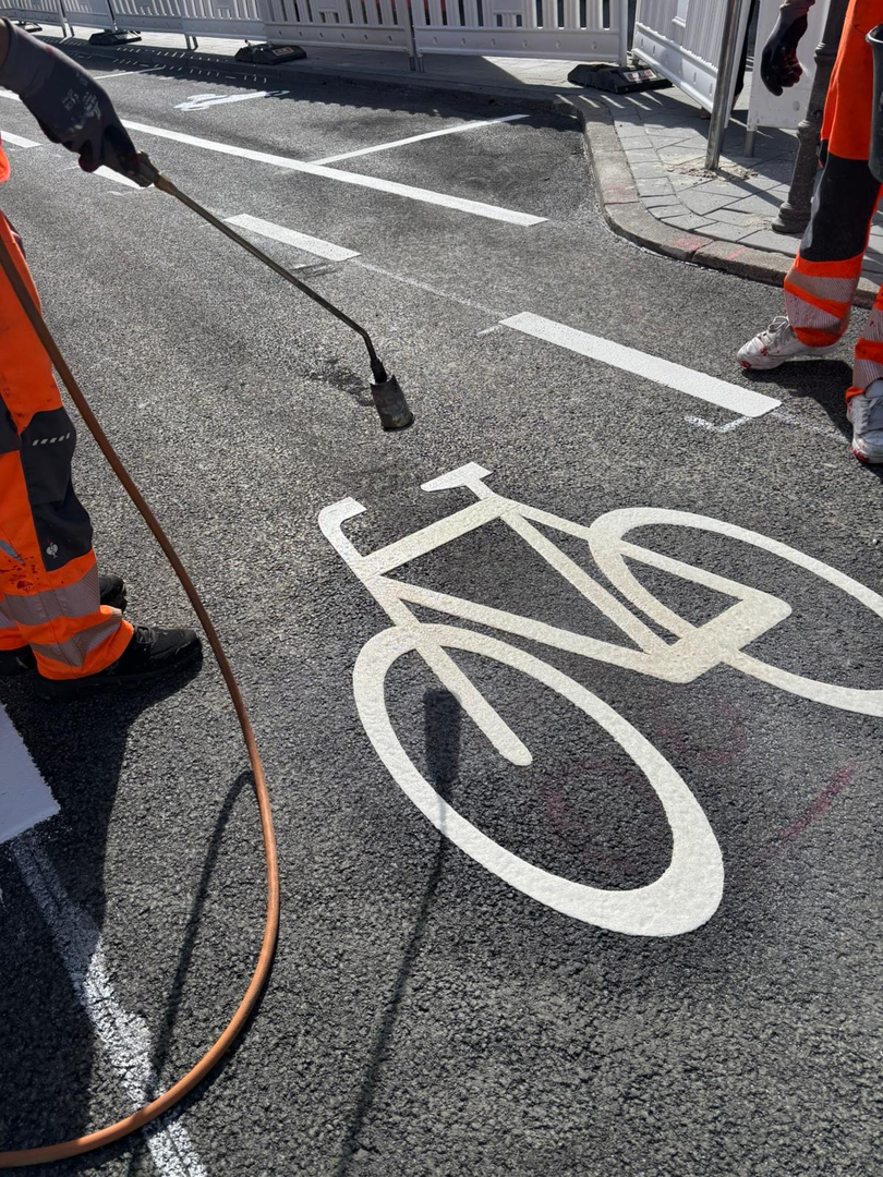 • Die Fahrbahndecke wurde auf rund 2.700 Quadratmetern in Asphaltbauweise erneuert und neue Markierungen aufgetragen