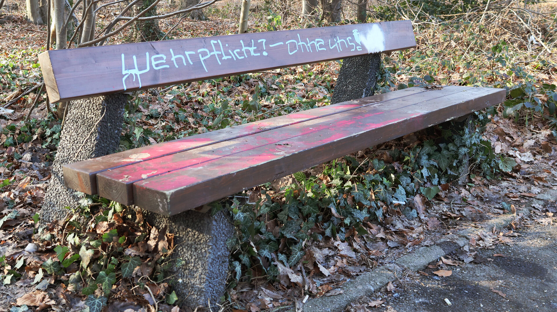 Auf die beschmierten Bänke wurden sie im Rahmen einer Joggingrunde aufmerksam. Neben allgemeinen Verunreinigungen befand sich auf einer Bank unter anderem der Schriftzug „A.C.A.B.“, der von vielen Polizeibeamtinnen und -beamten als pauschale Herabwürdigung empfunden wird. Eine zweite Bank war mit einem politischen Protestschriftzug versehen. Unabhängig vom jeweiligen Inhalt gilt: Die Beschädigung öffentlichen Eigentums ist nicht akzeptabel.