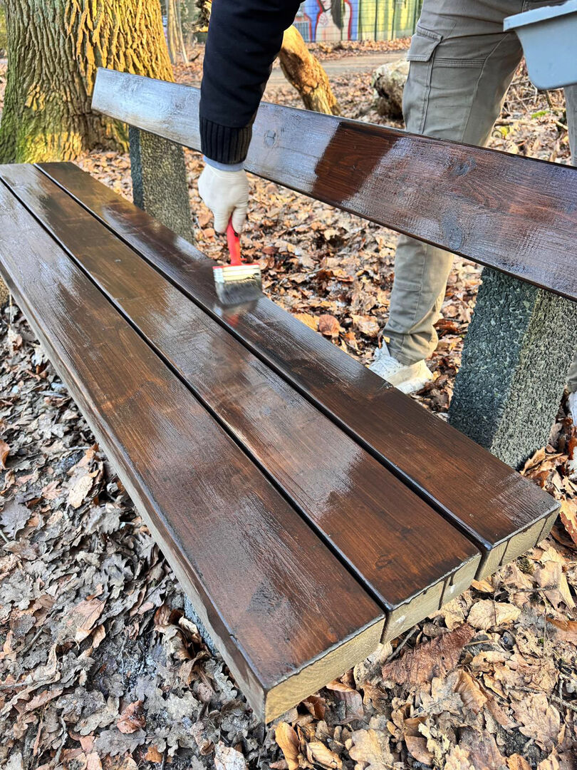 Nach Abstimmung mit dem städtischen Fachbereich Klimaschutz, Umwelt und Mobilität übernahmen zwei der Initiatoren eigenständig die Reinigung. Mit handwerklichem Einsatz wurden die Bänke abgeschliffen und anschließend neu lasiert. Innerhalb weniger Stunden konnten beide Sitzgelegenheiten wieder in einen ordnungsgemäßen Zustand versetzt werden. Die Aktion stieß bei Spaziergängerinnen und Spaziergängern auf durchweg positive Resonanz und wurde vielfach ausdrücklich gewürdigt.